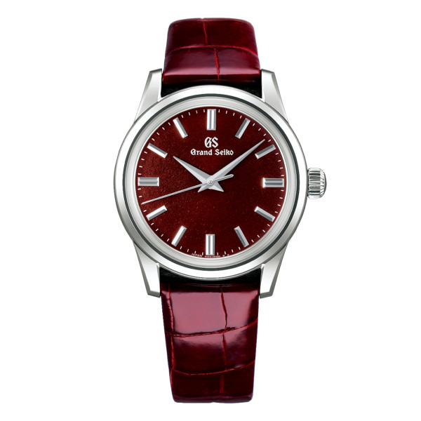 Ref. SBGW287 - Das Zifferblatt dieser Armbanduhr ist in einem tiefen Burgunderrot gehalten, das von den satten Herbstfarben von Boshū inspiriert ist, der "sekki" oder Jahreszeit, in der die Bäume rund um das Grand Seiko Studio Shizukuishi im Norden Japans ihre Farbe ändern und ankündigen, dass der Winter vor der Tür steht. Angetrieben von dem schlanken Handaufzugswerk Kaliber 9S64, ist dieser raffinierte Zeitmesser in seinem Gesamtdesign schlicht mit faszinierendem Detailreichtum. Das Zifferblatt ist offen und klar, aber wenn man durch den Saphirglasboden blickt, wird die Perfektion des von Hand montierten und justierten Uhrwerks sichtbar. Dank einer langen Zugfeder und einer Unruh, die beide aus SPRON-eigenen Legierungen bestehen, verfügt diese Uhr über eine hohe und stabile Ganggenauigkeit und eine Gangreserve von 72 Stunden.