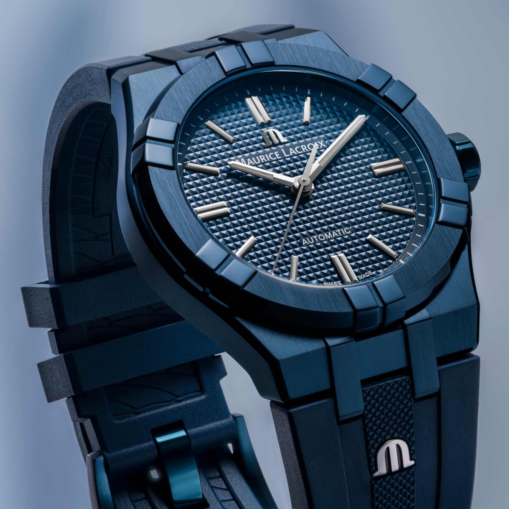 Blaues Kautschukarmband mit Maurice Lacroix"m"-logo