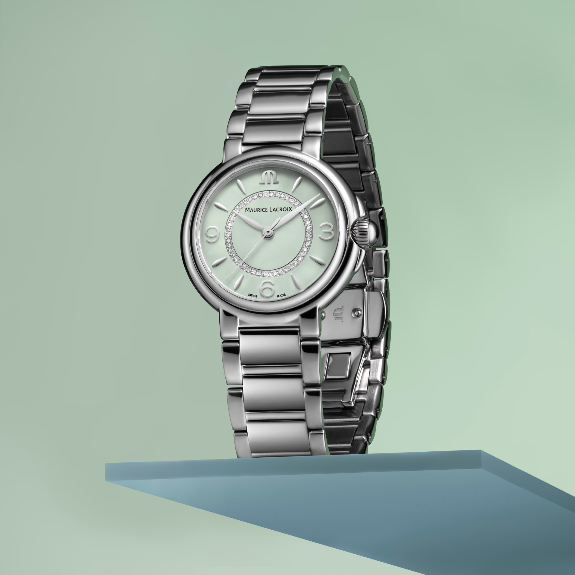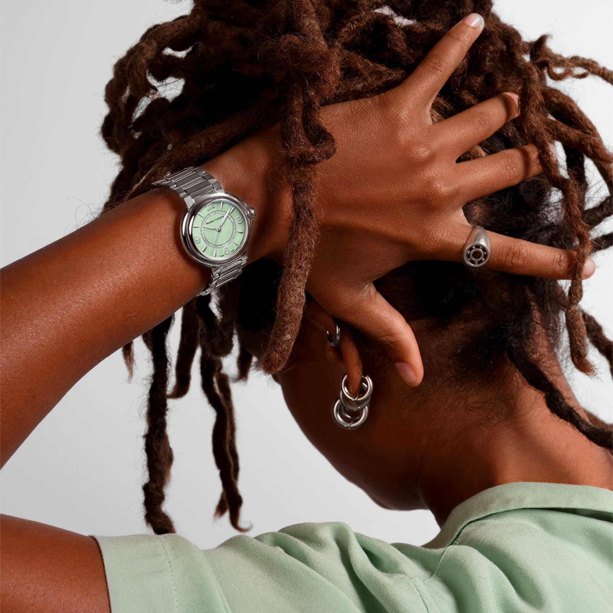 Grünes Zifferblatt mit römischen und arabischen Ziffern